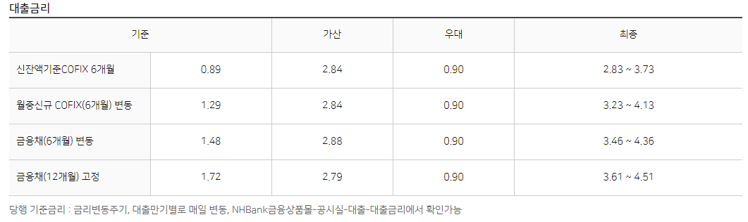 농협은행 사업자 신용대출 금리안내