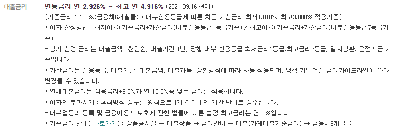 다만 위의 금리는 예시일 뿐이며, 대출을 신청하시는 분의 개인신용평점 및 대출금액 등에 따라 개인별 차등 적용됩니다.