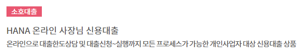 하나은행 개인사업자 신용대출 : HANA 온라인 사장님 신용대출