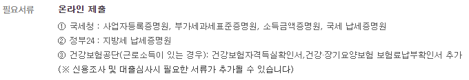 - 신청일 기준 사업자등록 후 업력 1년 이상인 개인사업자