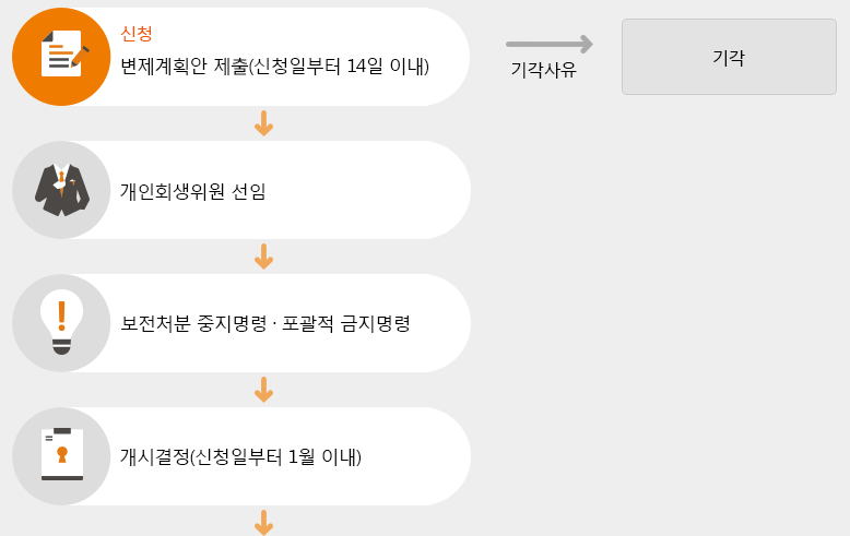 개인회생의 신청절차는 아래와 같습니다.