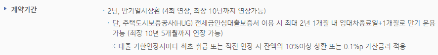 대출기간은 2년으로 결정되며, 4회 연장하여 총 10년까지 연장하여 이용할 수 있습니다.