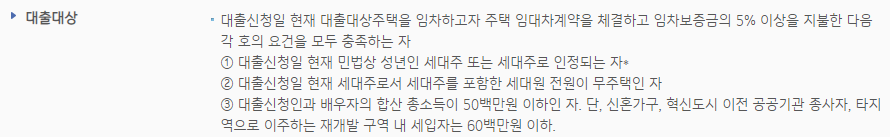 - 대출신청인과 배우자의 합산 총소득이 5000만원 이하인 가구