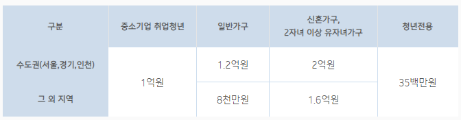 수도권 지역의 일반가구의 대출한도는 최고 1억 2천만원까지이며, 비수도권 지역의 일반가구는 최고 8천만원까지 대출 신청이 가능합니다.