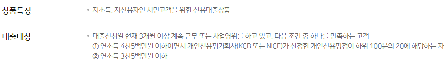 - 연소득 4500만원 이하이면서 개인신용평가회사가 산정한 개인신용평점이 하위100분의 20에 해당하는 분