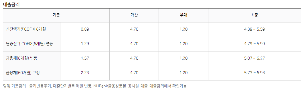 다만 위의 금리는 참고용이며, 실제 금리는 대출을 신청하시는 분의 대출 조건 등에 따라 개인별 차등 적용됩니다.