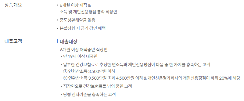 신한은행에서는 소득과 신용기준을 완화하여 직장인의 생활안정자금을 지원하는 비대면 정부지원 서민금융 상품을 취급중에 있습니다.
