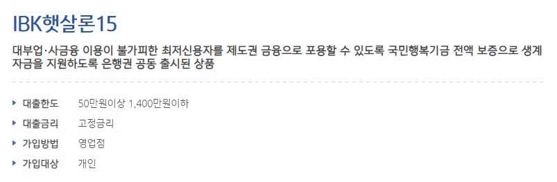 기업은행 햇살론15 : 정부지원 서민금융상품