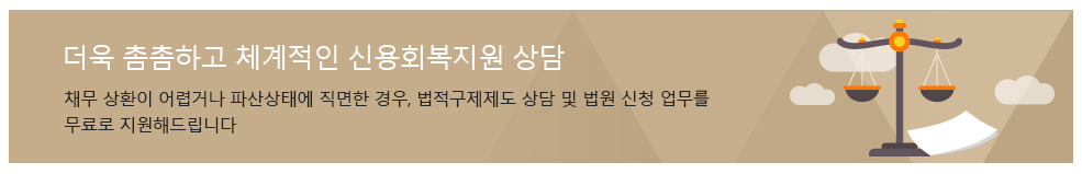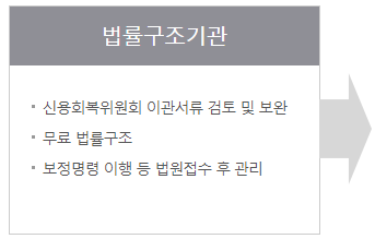 - 법률구조기관, 신용회복위원회 법률지원단이 소송대리를 지원합니다.