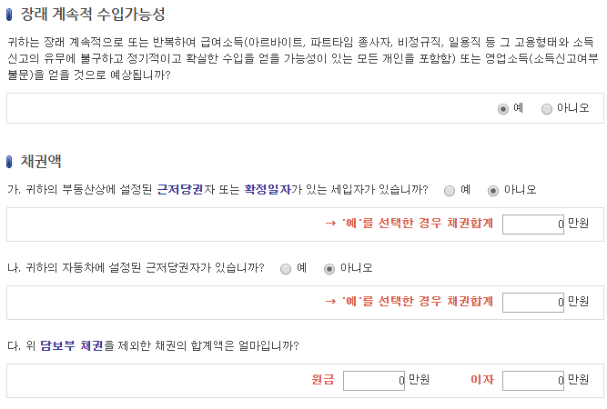 대한법률구조공단 개인회생 파산지원센터 홈페이지에 접속하면 위와 같은 자가진단을 해볼 수 있습니다. 자가진단 후 개인회생이 가능하다고 결과가 나온다면 신용회복위원회 또는 개인회생 파산지원센터와 상담하셔서 도움을 받으시길 바랍니다.