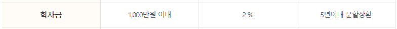 대출금리는 연간 2%의 고정금리가 적용되며, 상환기간은 5년이내로 분할상환 방식으로 상환이 진행됩니다.
