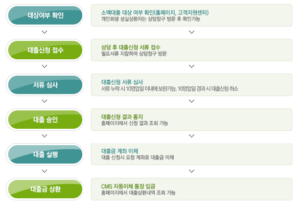 국민행복기금 소액대출 절차는 아래와 같으니 참고하셔서 진행하시면 좋겠습니다.