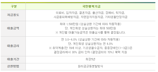 국민행복기금 소액대출 조건안내