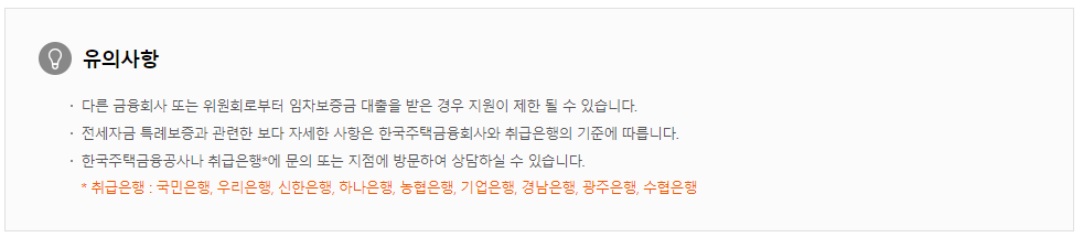 지원한도는 임차보증금의 80%범위내에서 최대 3000만원까지, 채권보존 조치시 최대 4500만원까지 전세자금대출을 지원받을 수 있으니 참고바랍니다.