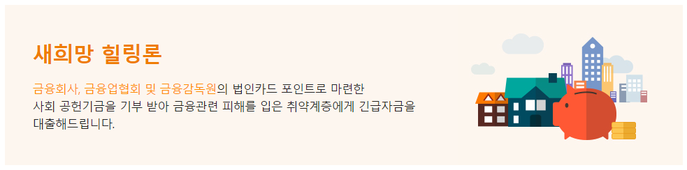 보이스피싱 피해자 대출은 금융회사 또는 금융업협회 및 금융감독원의 법인카드 포인트로 마련한 사회 공헌기금을 기부받아 금융관련 피해를 입은 취약 계측에게 긴급자금을 지원하는 정부지원 대출 상품입니다.