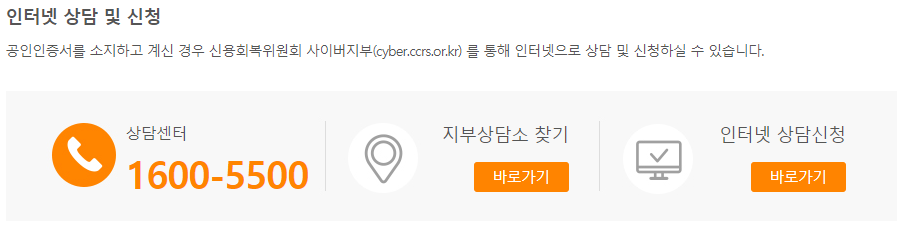 공인인증서를 소지하고 있는 경우 신용회복위원회 사이버지부를 통해 인터넷으로 상담 및 신청할 수 있으니 필요시 상담하시길 바랍니다.