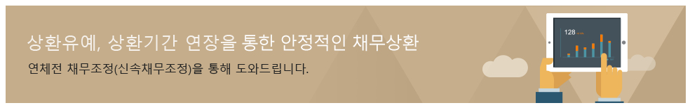 연체전에 신청하니 추심을 받을 필요도 없고 신청비 5만원으로 자신의 모든 신용채무를 통합하여 최장 10년간 분할상환할 수 있게 조정을 해주고 있습니다.
