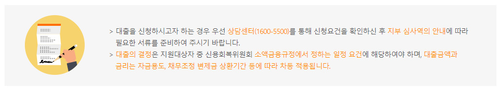 신용회복위원회 사이버지부에서 인터넷 및 모바일 앱을 통해 소액대출을 신청할 수도 있지만 자금의 용도가 달라 금리 및 한도가 달라질 수 있으니 참고만 하시면 좋겠습니다.