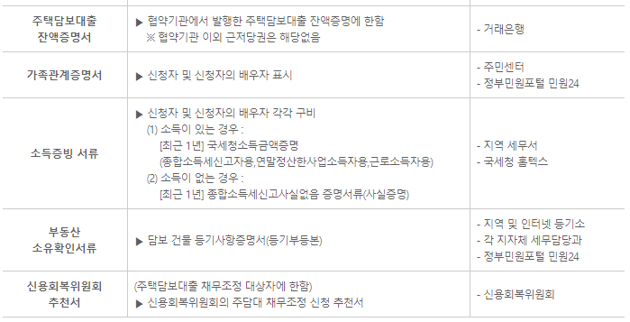 주택담보대출 연체 채무조정시 필요서류는 아래와 같으니 참고하셔서 준비하시면 좋겠습니다.