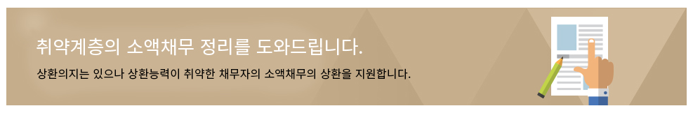 정부산하기관인 신용회복위원회에서는 상환의지는 있으나 상환능력이 취약한 채무자의 소액채무 특별면책제도를 시행하고 있습니다.