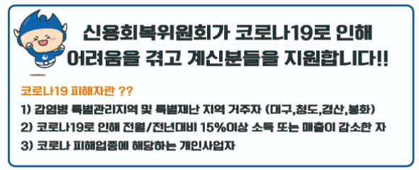 신용회복위원회 코로나19 피해자 채무조정 특례제도의 지원대상은 아래와 같습니다.