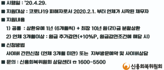 - 6개월씩 2회에 걸쳐 최장 1년간 채무상환 유예