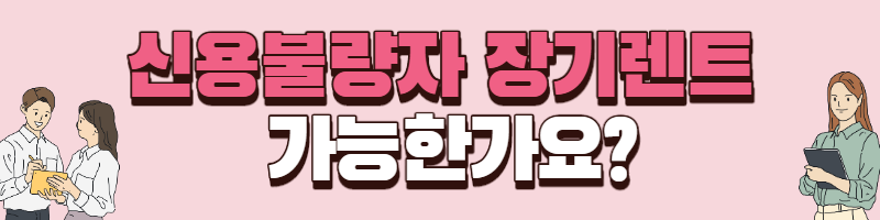 그래서 일부 장기렌트 업체에서는 신용불량자도 일정한 조건을 충족하면 장기렌트를 할 수 있는 상품을 출시하여 운영하고 있는 실정입니다.