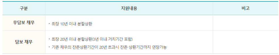 - 정착자금대출 등 법률에 의해 채무조정이 제한되는 채무