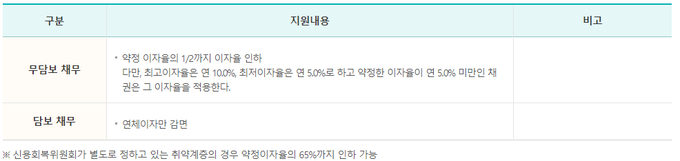 신용회복위원회 프리워크아웃 : 이자감면 채무조정 신청자격, 지원내용