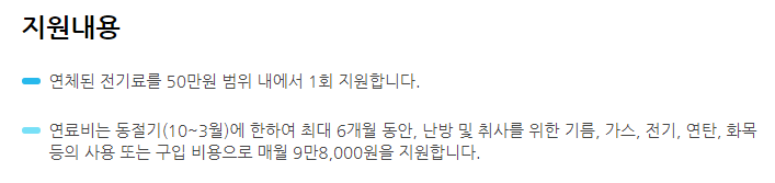 연체된 전기료를 50만원 범위내에서 1회 지원합니다.