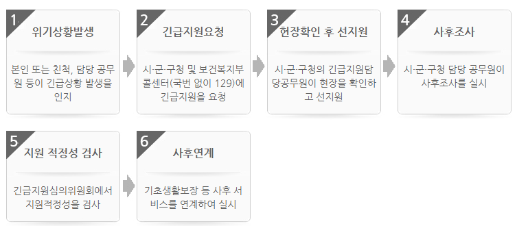 최소한의 요건만 충족하면 선 지원 후 사후 조사를 실시하는 것을 원칙으로 하기 때문에 지금 위기상황에 처해있다면 보건복지부 콜센터로 긴급지원을 요청하시길 바랍니다.
