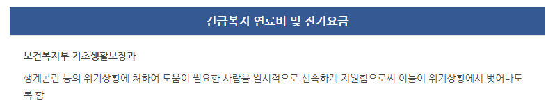 긴급복지 연료비 및 전기요금 참고사항