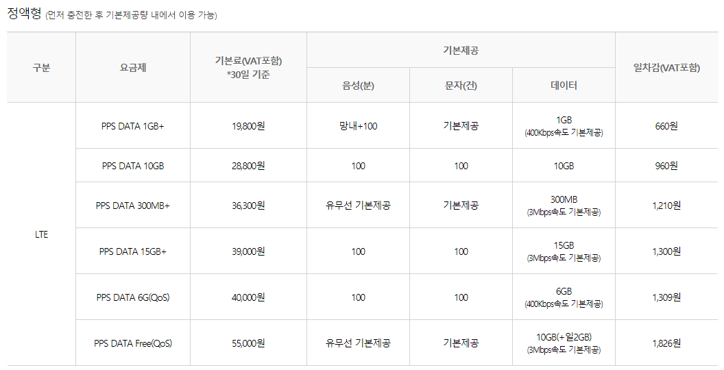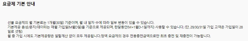 정액형 요금제는 30일 기준으로 정해진 금액만큼만 지불하면 무제한으로 이용가능한 요금제입니다.