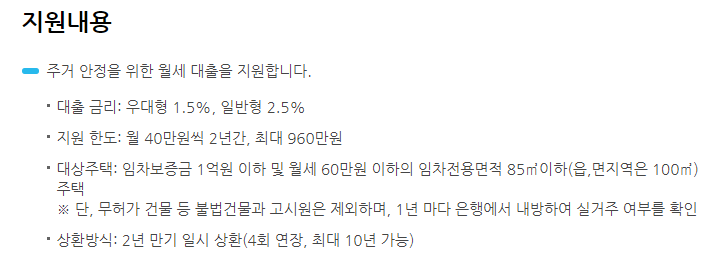 주거안정 월세대출은 월 40만원씩 2년간 최대 960만원까지 지원됩니다.