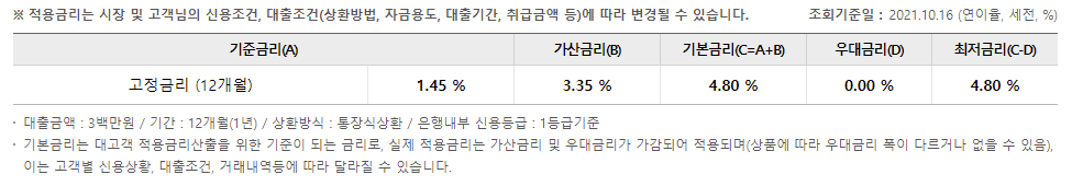 | 하나은행 생활비대출 이용안내 (0) | 2021.10.16 |