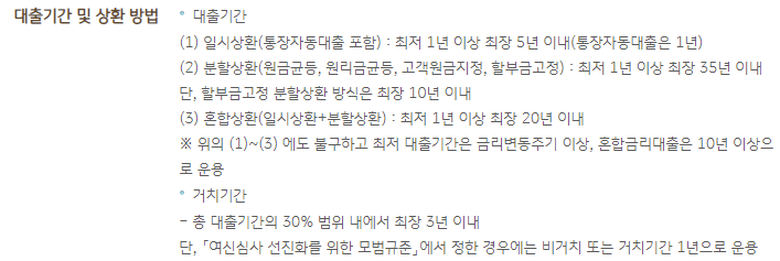 - 분할상환 : 최저 1년이상 최장 35년 이내