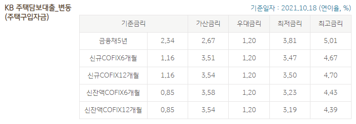 국민은행 주택담보 대출금리