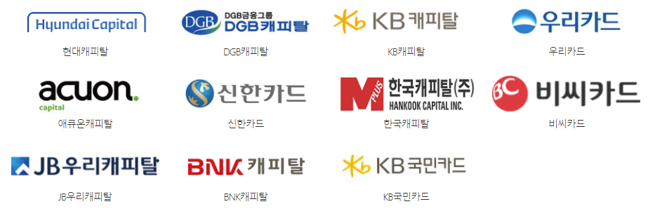 전국 11개 카드사 및 캐피탈사와 제휴를 맺어 위의 금융회사의 대출상품을 한번에 비교할 수 있습니다.