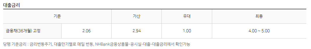 다만 금리변동주기 및 대출만기별로 금리는 조금씩 달라질 수 있으며, 대출을 신청하시는 분의 신용등급 및 조건 등에 따라서도 달라질 수 있습니다.