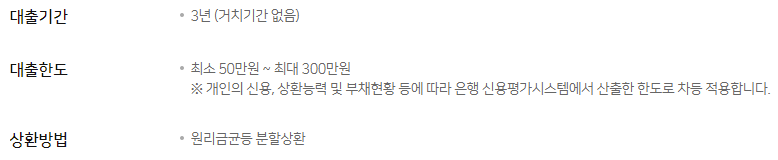 대출기간은 거치기간없이 3년이며, 대출기간을 연장할 수 없습니다.