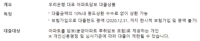우리은행 아파트 담보대출 : 우리아파트론