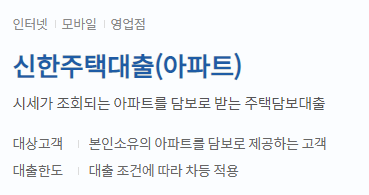 신한은행 아파트 담보대출 : 신한주택대출(아파트)