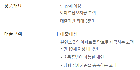 본인 소유의 아파트를 담보로 제공할 수 있는 분이 아래의 요건을 충족하면 대출 신청이 가능합니다.