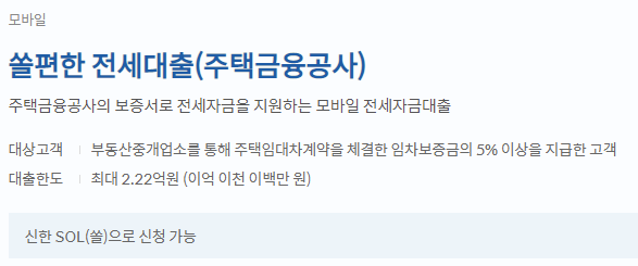 신한은행 전세자금대출 : 쏠편한 전세대출(주택금융공사)