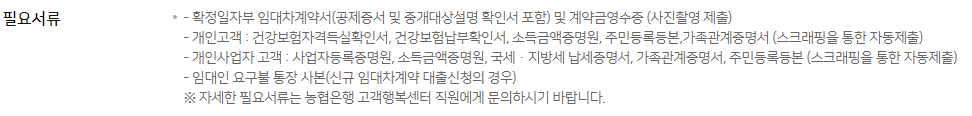 농협은행 전세자금대출 신청시 필요서류는 아래와 같습니다.
