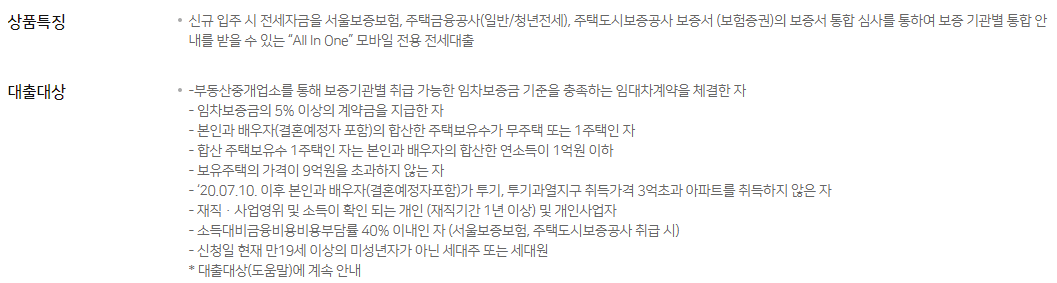 농협은행 전세자금대출은 신규 입주시 전세자금을 신청할 수 있는 서울보증보험, 주택금융공사, 주택도시보증공사 보증서의 통합심사를 통하여 보증 기관별 전세자금을 통합하여 확인할 수 있는 모바일 전세자금대출 상품입니다.