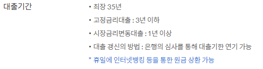 시장금리에 따라 금리가 변동되는 대출의 경우 1년이상부터 최장 35년까지 대출기간을 약정할 수 있으니 참고바랍니다.