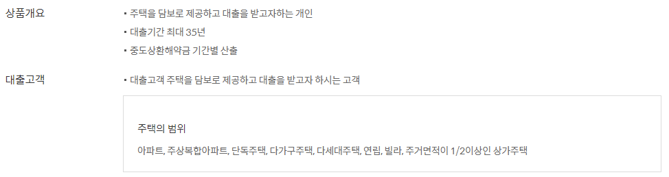 신한은행 주택담보대출은 주택을 담보로 제공할 수 있는 분을 대상으로 필요한 자금을 지원하는 담보대출 상품입니다.