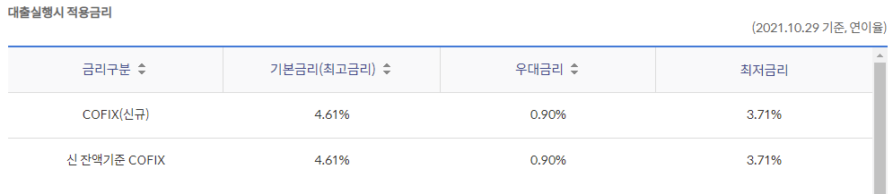 다만 위의 금리는 참조용으로 실제 금리는 신청시기의 시장금리 및 대출조건 등에 따라 개인별 차등 적용됩니다.