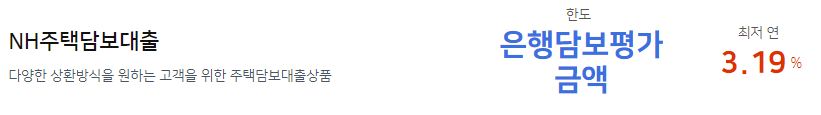 농협은행 주택담보대출의 금리는 연간 3.19%의 금리가 적용될 수 있습니다.